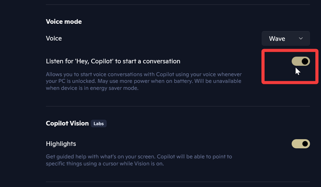 Если вам надоело вводить подсказки вручную, вас заинтересует это обновление. С помощью Copilot Voice вы можете запустить приложение, просто произнеся... «Эй, второй пилот». Чтобы включить его, перейдите в Настройки И замените его в звуковой режим.